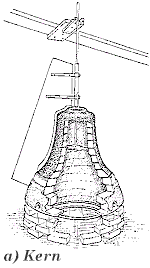 Bei der Herstellung einer Glockenform wird zuerst ein Ziegelkern gemauert. Darauf kommt eine Lehmschicht, die mit einer Schablone glattgestrichen wird. Anschließend wird nach dem Trocknen der Schicht diese mit Rinderbrühe getränkt. Diese dient als Trenmittel.