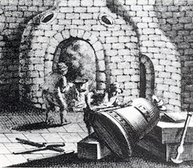 Darauf wird dann eine zweite Lehmschicht aufgetragen und wieder mit der Schablone bearbeitet. Es entsteht die sog. Falsche Glocke.